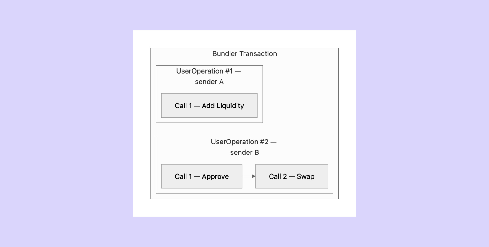 The internal calls the smart contract wallet performs to carry out the user’s intent. These are the calls your analytics need to extract and interpret.